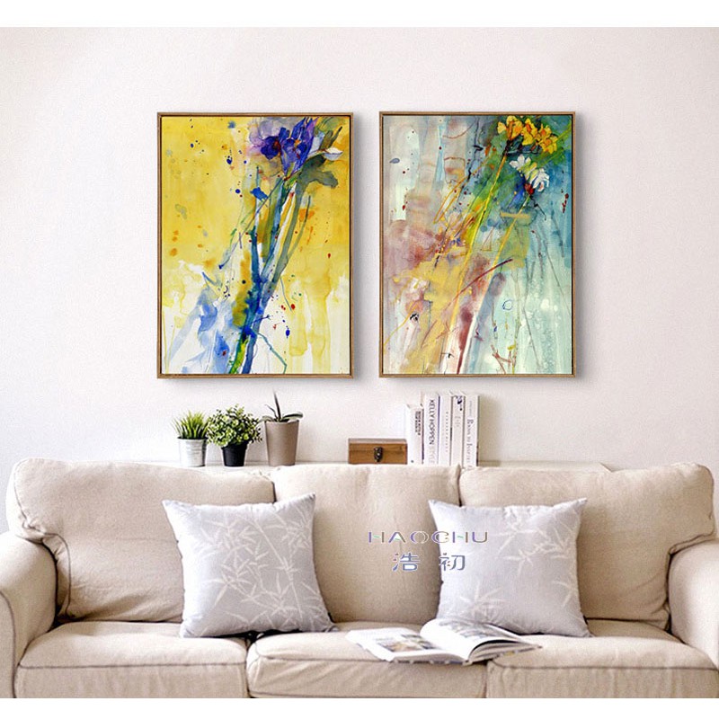 ᗗGirass Impress Da Flor Aguarela Pintura Minimalista enquadrado em Tela Moderna Parede Arte Fine Art Paper - a327