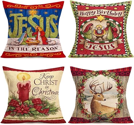 Amazon.com: Easternproject Set of 4 Happy Birthday Jesus Throw Pillow Covers Cotton Linen 18x18 Inch Nativity Keep Christ in Christmas Quotes Pillow Cases Xmas Gifts Home Bedroom Decor Cushion Cover: Home &